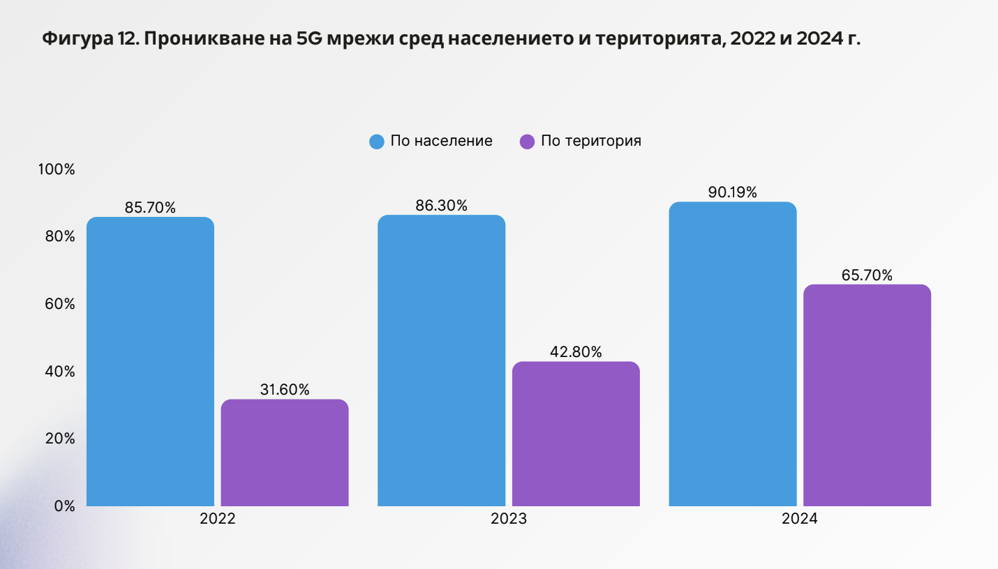Анализът на Института за пазарна икономика подчертава, че България вече разполага с инфраструктура, която я поставя сред добре подготвените за цифровото десетилетие държави. Покритието с оптика до дома (FTTP) достига 90,4% от домакинствата при средно 69,2% в ЕС. Мрежите с много висок капацитет (VHCN), включително оптика и DOCSIS 3.1, обхващат 90,3% от домакинствата при 82,5% средно за ЕС. 5G мрежите покриват над 80% от домакинствата и над 90% от населението, а трафикът на мобилни данни почти се удвоява за две години – от 116 PB на 230 PB. Данните ясно потвърждават, че телекомите са успели да изградят „гръбнак“ на цифровата икономика, който позволява устойчиво развитие на електронната търговия, дистанционната работа, дигиталните услуги и индустриалните приложения.